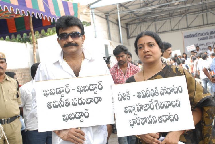 Telugu film stars joined the chorus against corruption with a protest rally and satyagraha to be organised at Filmnagar on Friday. Responding to a call given by The Movie Artistes Association (MAA) actors, producers, directors, film workers and others associated with the film industry joined the protest.