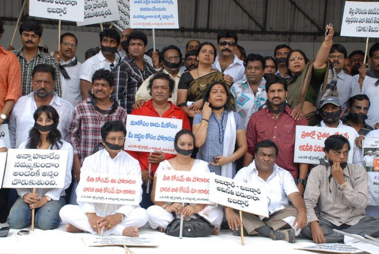 Telugu film stars joined the chorus against corruption with a protest rally and satyagraha to be organised at Filmnagar on Friday. Responding to a call given by The Movie Artistes Association (MAA) actors, producers, directors, film workers and others associated with the film industry joined the protest.