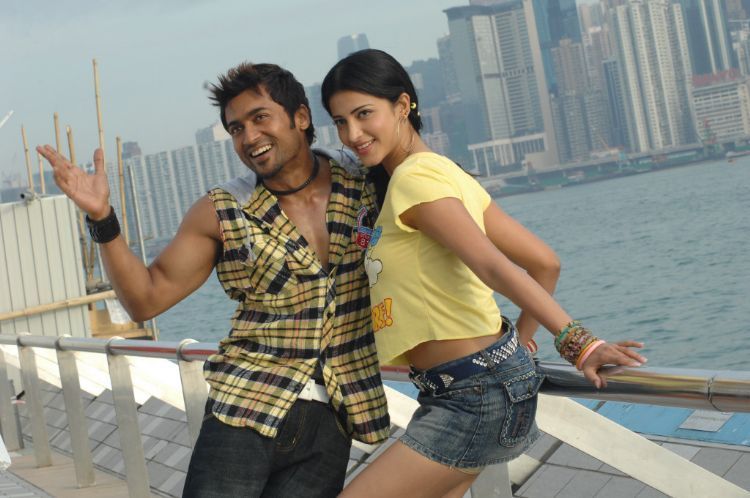 Surya and Sruthi Hasan in 7th Sense, a tamil film (7 aam arivu) dubbed in telugu is getting ready for release.