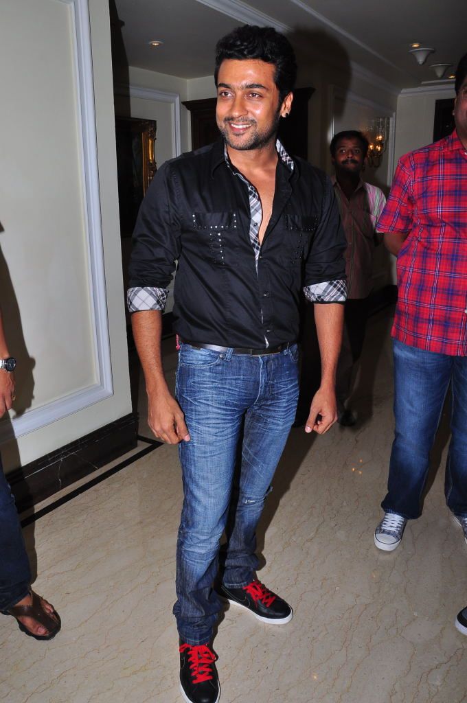 Actors Shruthi Haasan and Surya, during the logo launch of the fourthcoming movie, ‘7th Sense', in Hyderabad on Friday.