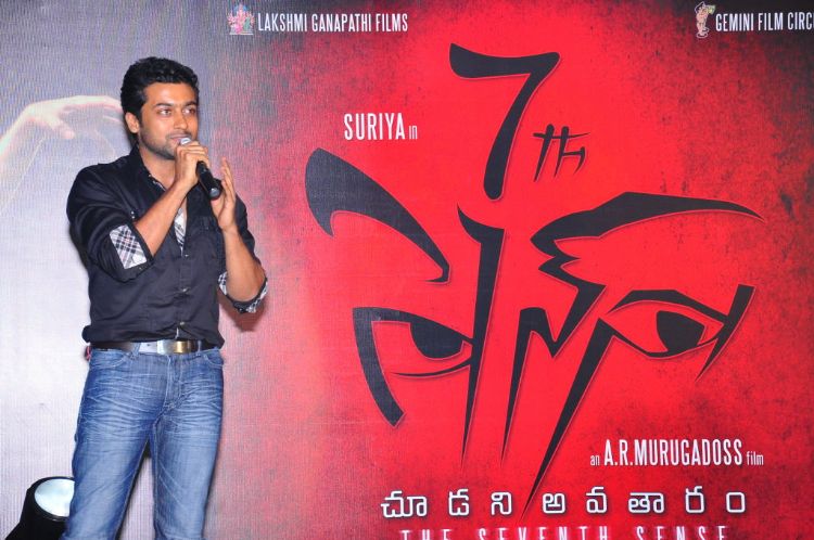 Actors Shruthi Haasan and Surya, during the logo launch of the fourthcoming movie, ‘7th Sense', in Hyderabad on Friday.