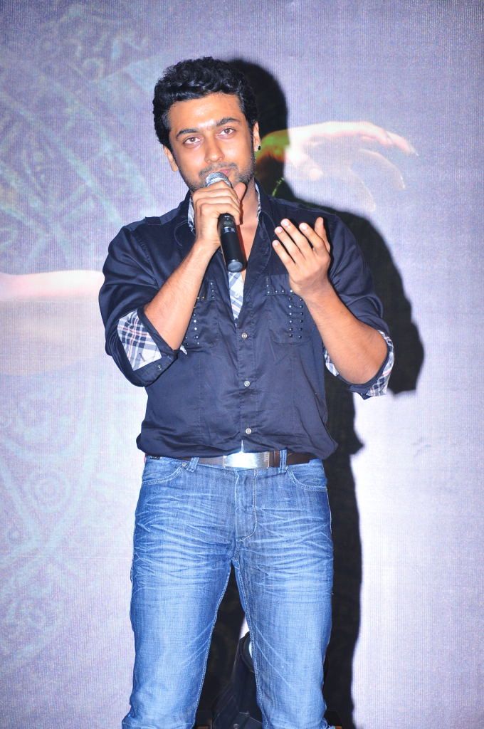 Actors Shruthi Haasan and Surya, during the logo launch of the fourthcoming movie, ‘7th Sense', in Hyderabad on Friday.