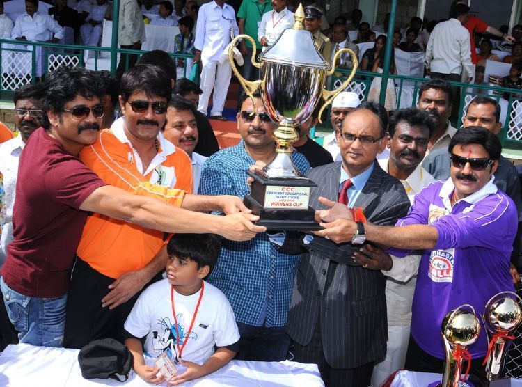 Tollywood Stars charity cricket match was held in Anantapur on Sunday. Teams represented by Nandamuri Balakrishna and Nagarjuna played a nail biting limited over match. Nagarjuna team won the Cresent Crikcet Tropy.