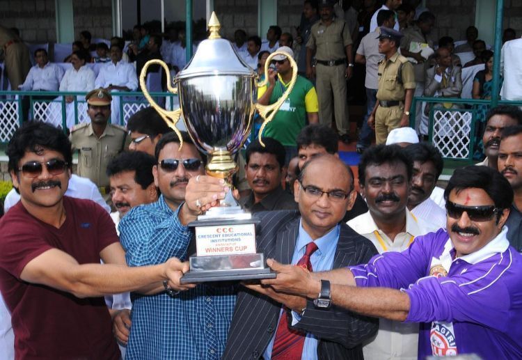 Tollywood Stars charity cricket match was held in Anantapur on Sunday. Teams represented by Nandamuri Balakrishna and Nagarjuna played a nail biting limited over match. Nagarjuna team won the Cresent Crikcet Tropy.