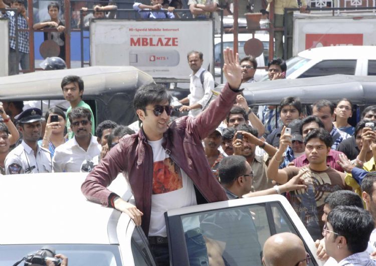 Ranbir Kapoor in Hyderabad for his forthcoming film Rockstar promotion on Monday.