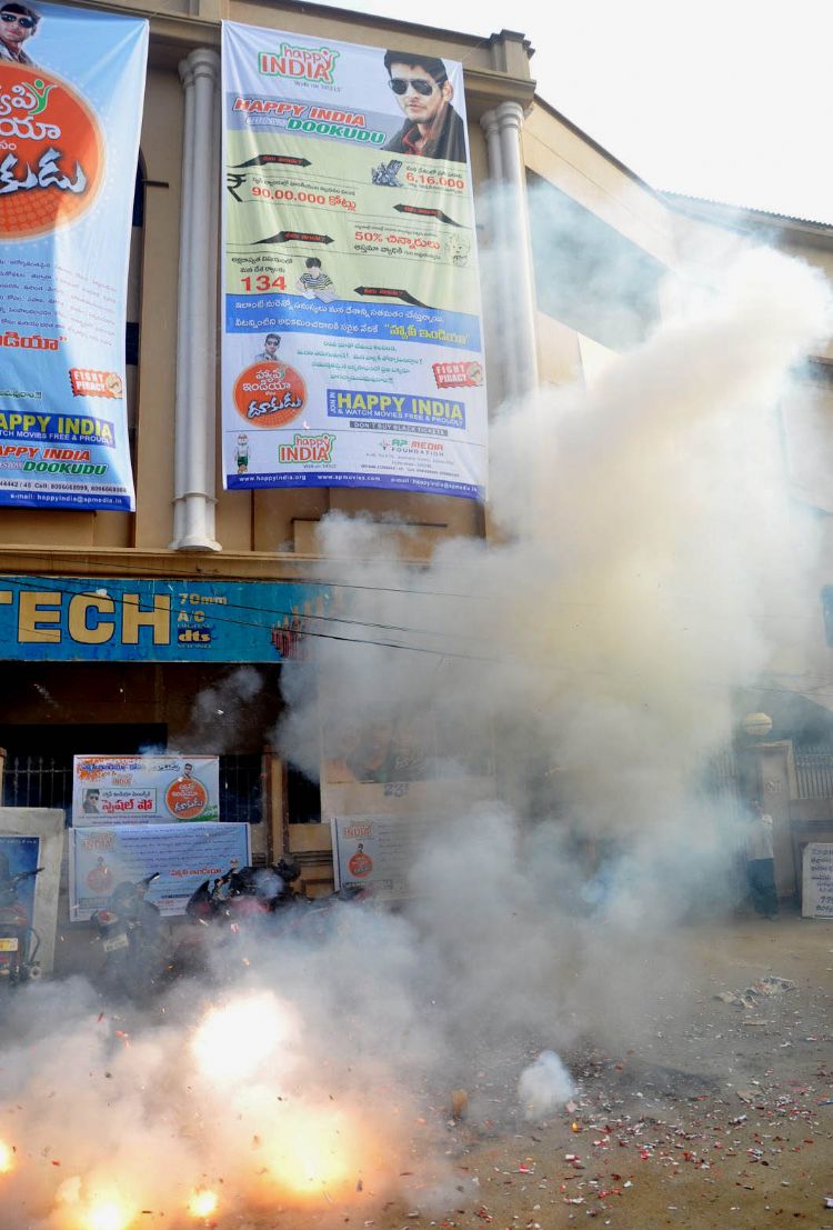 Dookudu release marks celebration and jubiliation among Mahesh Babu fans gathered at various theaters in Hyd.