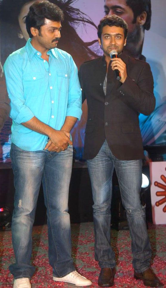 The audio launch of 7th Sense starring Suriya and Shruti Hassan saw the cream of Telugu cinema come to support Suriya, Murugadoss, and Shruti for the movie. The launch saw personalities like Rajamouli, Ram Charan, Allu Arvind, Allu Arjun, and Nikitha wish them luck for the movie. Apart from this, Karthi was also seen accompanying Suriya in high spirits. Suriya was seen being very friendly with Ram Charan Tej and Allu Arjun, showing the close bonding between the stars.