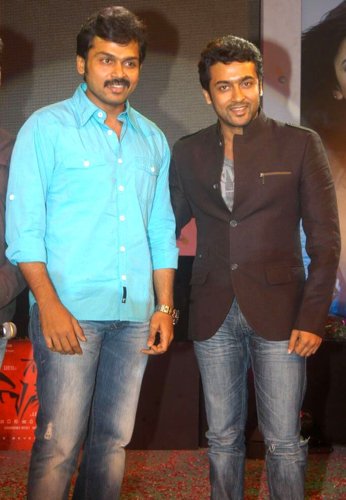 The audio launch of 7th Sense starring Suriya and Shruti Hassan saw the cream of Telugu cinema come to support Suriya, Murugadoss, and Shruti for the movie. The launch saw personalities like Rajamouli, Ram Charan, Allu Arvind, Allu Arjun, and Nikitha wish them luck for the movie. Apart from this, Karthi was also seen accompanying Suriya in high spirits. Suriya was seen being very friendly with Ram Charan Tej and Allu Arjun, showing the close bonding between the stars.