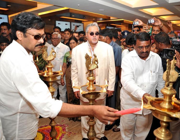 Mega Star Chiranjeevi launches Satya-2 multiplex theatres in Nellore on Wednesday. UB group chairman Vijay Malya, MP Nedurumilli Janardhana Reddy, BJP leader M.Venkaiah Naidu, MP T.Subbirami Reddy attended the event. The multiplex complex is owned by Ongole MP Magunta Srinivasulu Reddy.