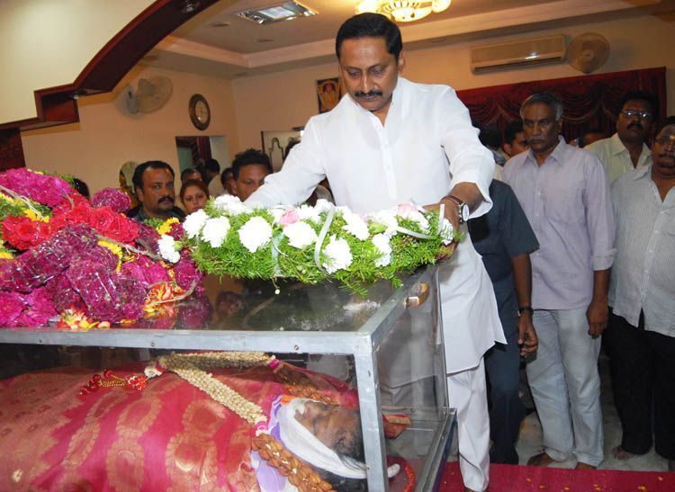 Chief Minister N.Kiran Kumar Reddy paying tributes to Smt Dasari Padma wife of of director and former union minister Dasari Narayana Rao who died here after prolonged illness on Friday.