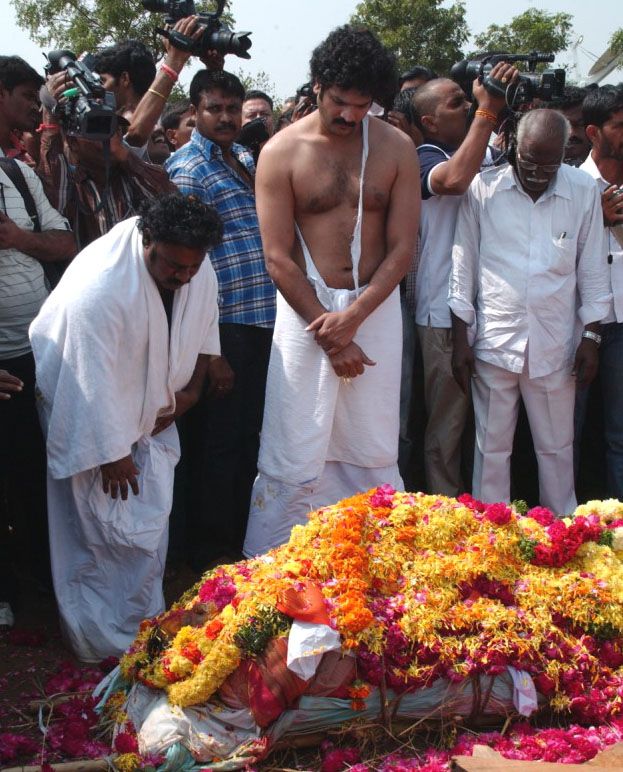 Dasari Padma, wife of veteran film director and former union minister Dasari Narayana Rao, was cremated at a farm house owned by the family in Mudimyala village of Moinabad mandal on Saturday. Prominent people from political parties and film industry atteded the funerals.