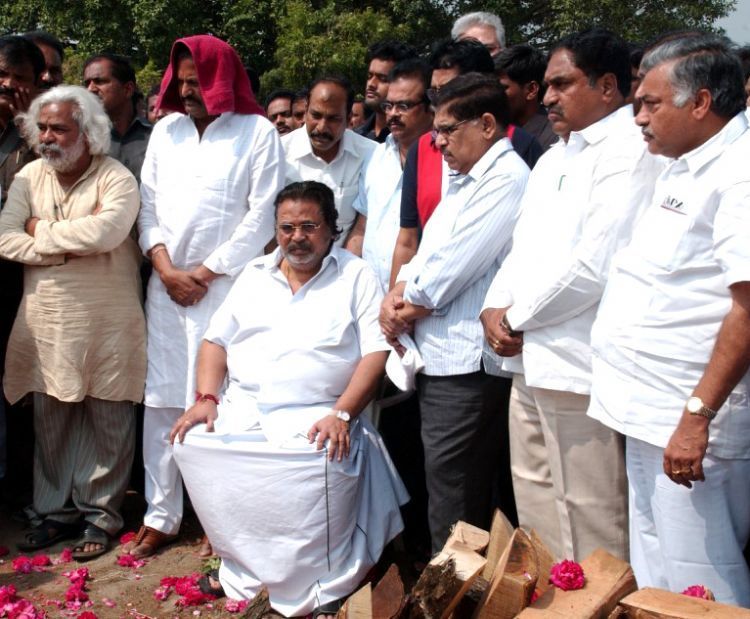 Dasari Padma, wife of veteran film director and former union minister Dasari Narayana Rao, was cremated at a farm house owned by the family in Mudimyala village of Moinabad mandal on Saturday. Prominent people from political parties and film industry atteded the funerals.