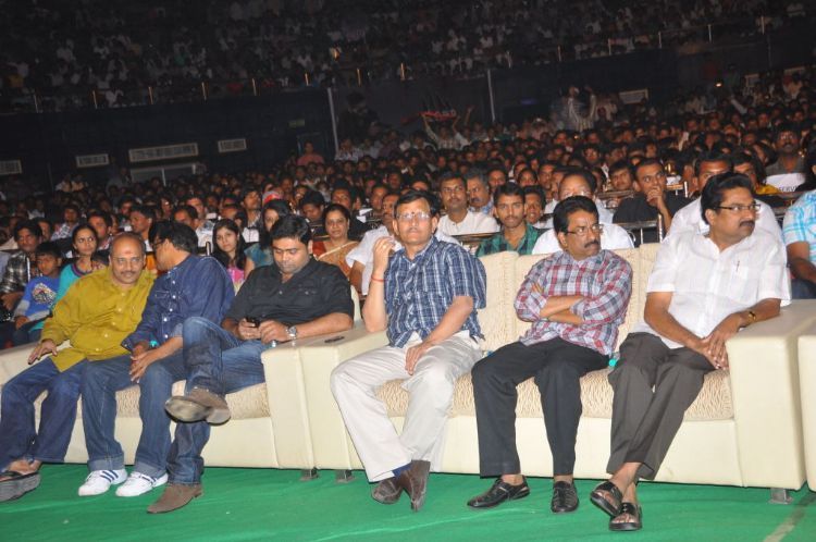 Hundreds of thousands of Pawan Kalyan's fans gathered outside Gachibowli stadium where Pawan's latest film Panjaa audio release function to be held on Saturday evening. The four lane road outside stadia become chock-a-block rendering huge traffic jam.