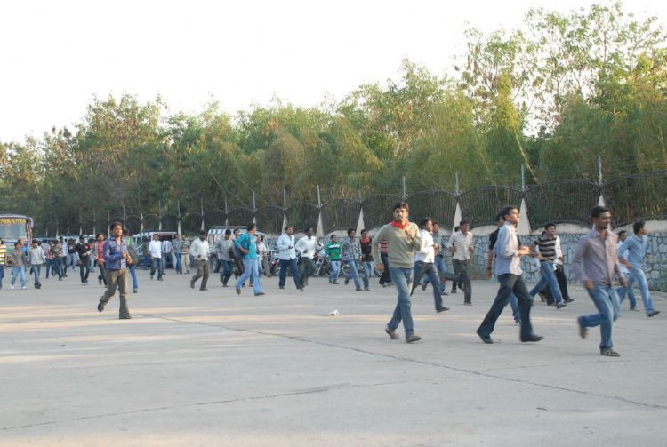 Hundreds of thousands of Pawan Kalyan's fans gathered outside Gachibowli stadium where Pawan's latest film Panjaa audio release function to be held on Saturday evening. The four lane road outside stadia become chock-a-block rendering huge traffic jam.