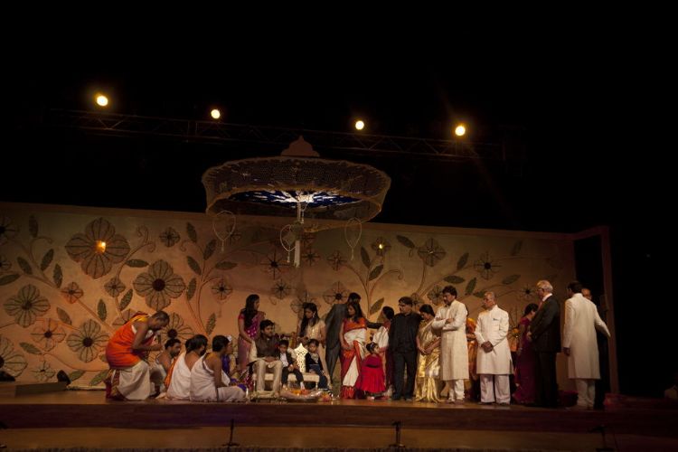 Actor Ram Charan Tej and Upasna Kamineni exchanging wedding rings during their engagement held at Temple Trees farm house in Hyderabad on Thursday.