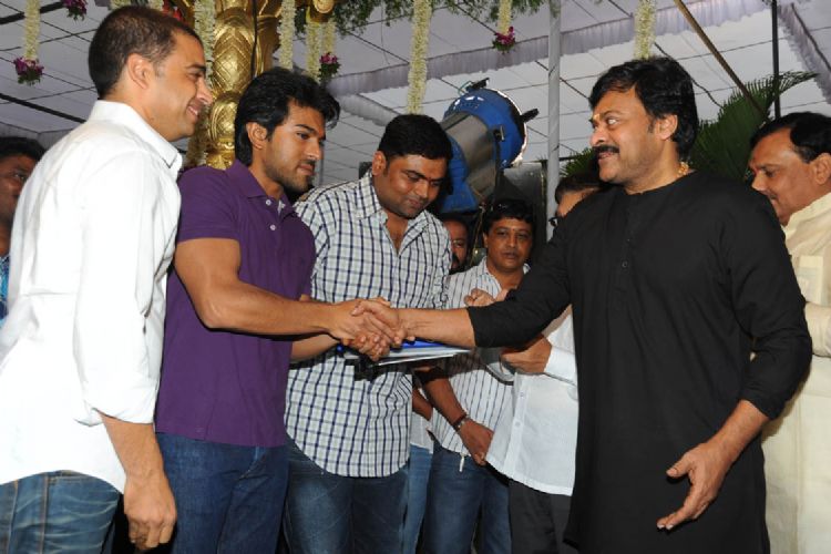 Chiranjeevi claps on Ram Charan for his new film Yevadu.