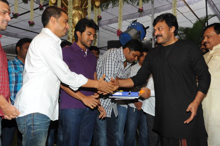 Chiranjeevi claps on Ram Charan for his new film Yevadu.