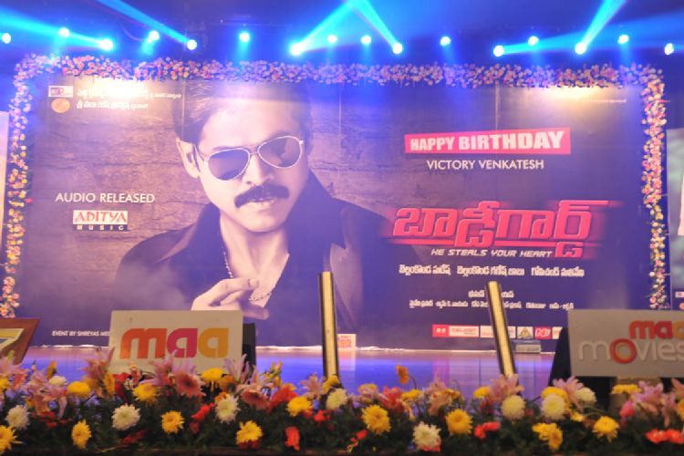 Venkatesh, Trisha starrer film Bodygaurd audio launch function was held at Silpakala Vedika on Tuesday. Stars like Prabhas, Rana, Nani graced the event.