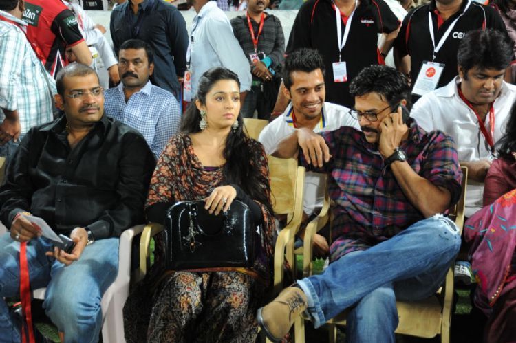 It was a night of loud cheers and true sportsmanship as stars and celebrities took to the stands to cheer for the players of Chennai Rhinos and Karnataka Bulldozers. It was a close finish as the Rhinos, for a second time, tasted victory and took away the CCL cup for 2012.