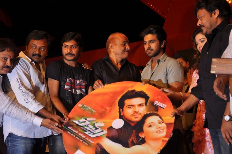 Ram Charan, Tamannah starrer Racha audio tracks were launched at Peoples Plaza in Hyderabad on Sunday.