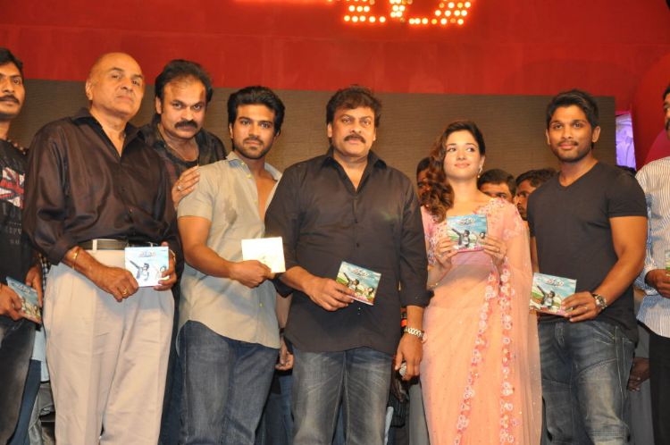 Ram Charan, Tamannah starrer Racha audio tracks were launched at Peoples Plaza in Hyderabad on Sunday.