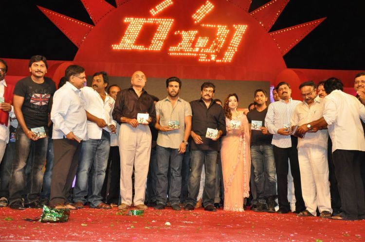 Ram Charan, Tamannah starrer Racha audio tracks were launched at Peoples Plaza in Hyderabad on Sunday.