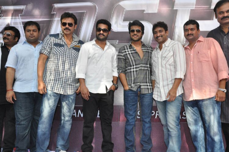 Ram Charan Teja sounded the clap board on NTR for the muhurat shot of his upcoming film Badshah under the direction of Srinu Vytla. Victory Venkatesh, director SS Rajamouli along with many prominent film personalities attended the film's opening on SUnday.