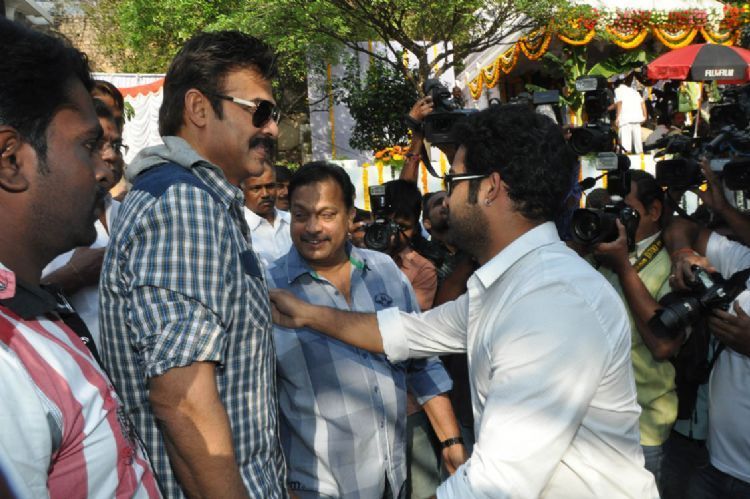 Ram Charan Teja sounded the clap board on NTR for the muhurat shot of his upcoming film Badshah under the direction of Srinu Vytla. Victory Venkatesh, director SS Rajamouli along with many prominent film personalities attended the film's opening on SUnday.