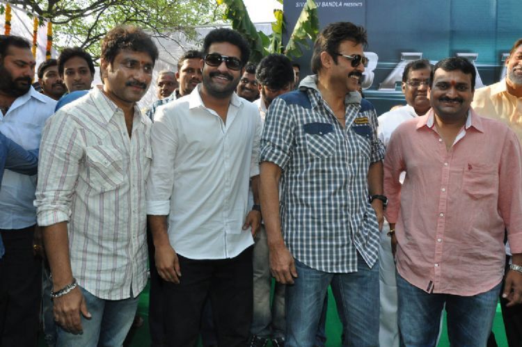 Ram Charan Teja sounded the clap board on NTR for the muhurat shot of his upcoming film Badshah under the direction of Srinu Vytla. Victory Venkatesh, director SS Rajamouli along with many prominent film personalities attended the film's opening on SUnday.