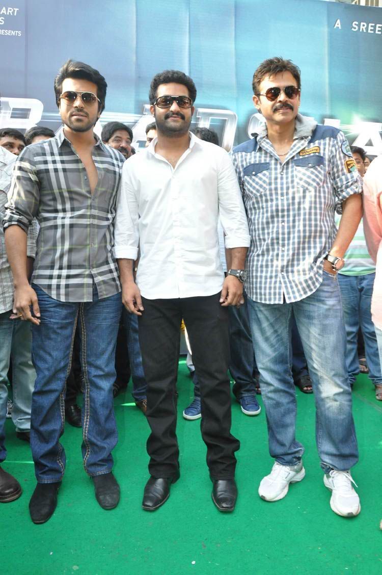 Ram Charan Teja sounded the clap board on NTR for the muhurat shot of his upcoming film Badshah under the direction of Srinu Vytla. Victory Venkatesh, director SS Rajamouli along with many prominent film personalities attended the film's opening on SUnday.