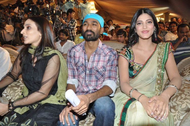Dhanush, Shruti Hasan starrer Three movie audio was released in Hyderabad on Tuesday.