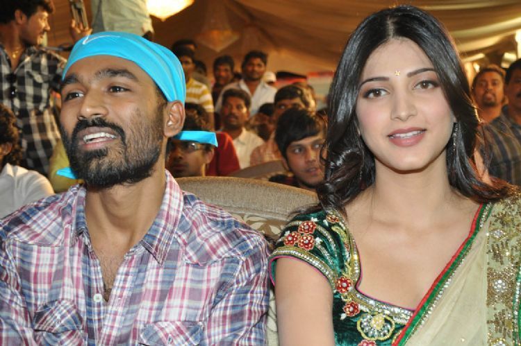Dhanush, Shruti Hasan starrer Three movie audio was released in Hyderabad on Tuesday.