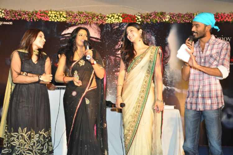 Dhanush, Shruti Hasan starrer Three movie audio was released in Hyderabad on Tuesday.