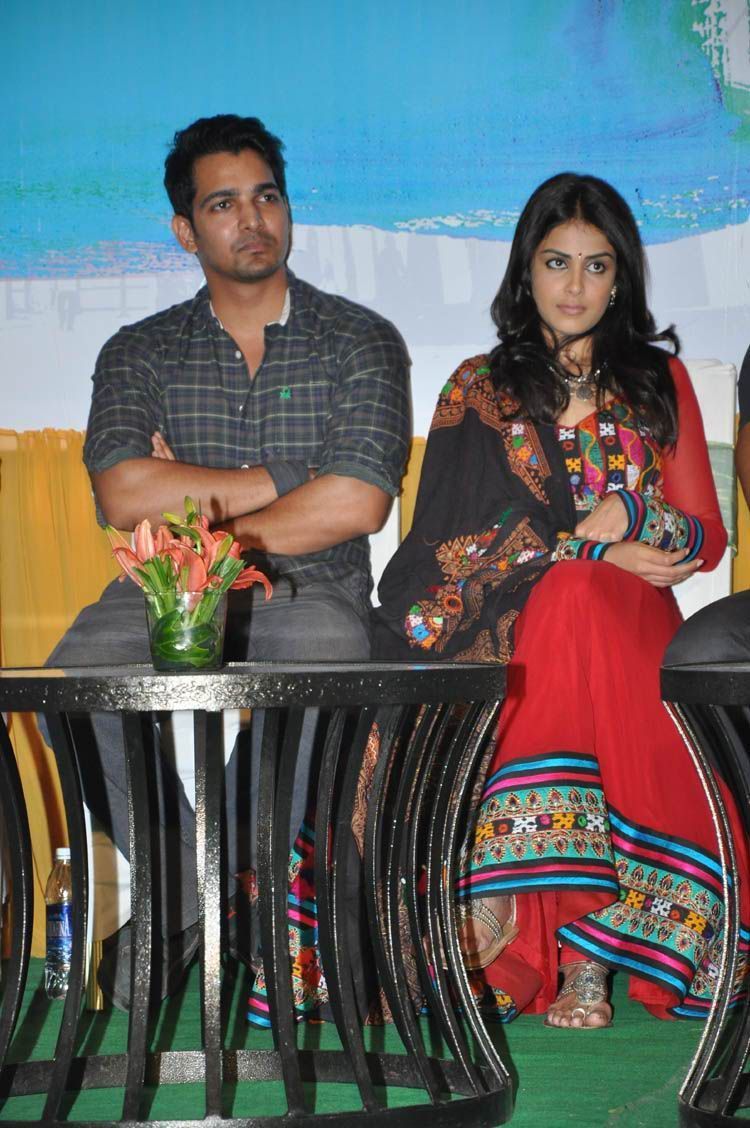Rana and Genelia at Naa Ishtam audio success meet held here on Thursday.