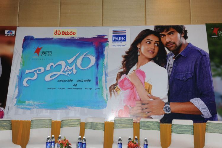 Rana and Genelia at Naa Ishtam audio success meet held here on Thursday.