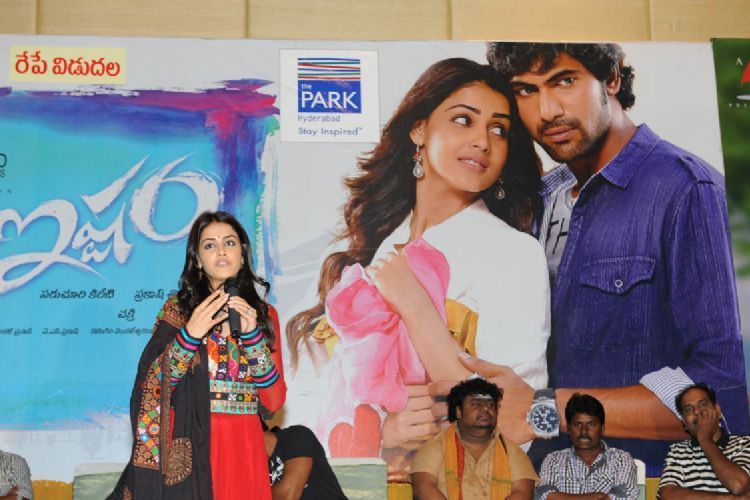 Rana and Genelia at Naa Ishtam audio success meet held here on Thursday.
