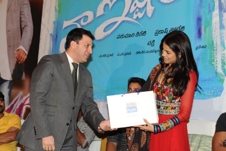 Rana and Genelia at Naa Ishtam audio success meet held here on Thursday.