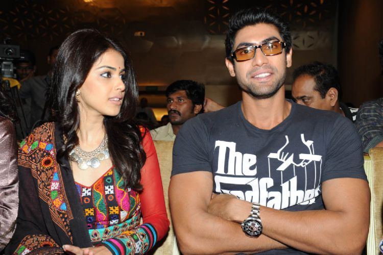 Rana and Genelia at Naa Ishtam audio success meet held here on Thursday.