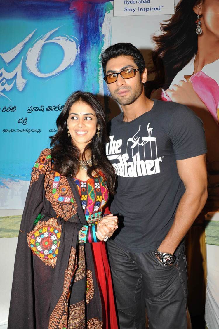 Rana and Genelia at Naa Ishtam audio success meet held here on Thursday.