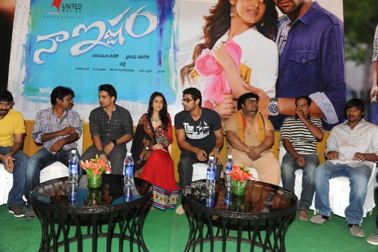 Rana and Genelia at Naa Ishtam audio success meet held here on Thursday.