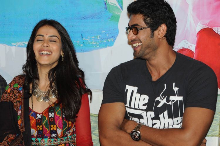 Rana and Genelia at Naa Ishtam audio success meet held here on Thursday.