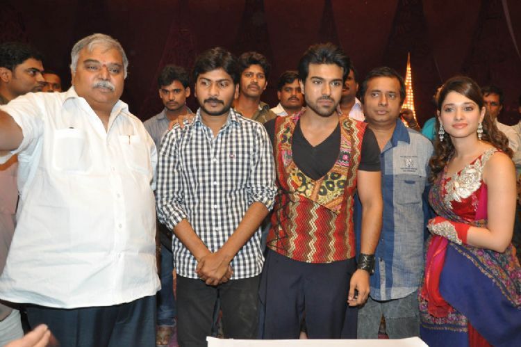 Ram Charan celebrates his birth day among Racha team on Monday.