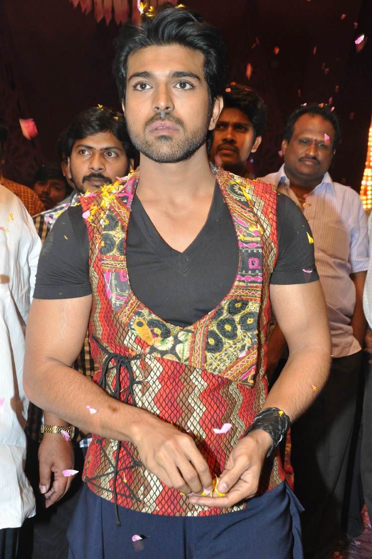 Ram Charan celebrates his birth day among Racha team on Monday.