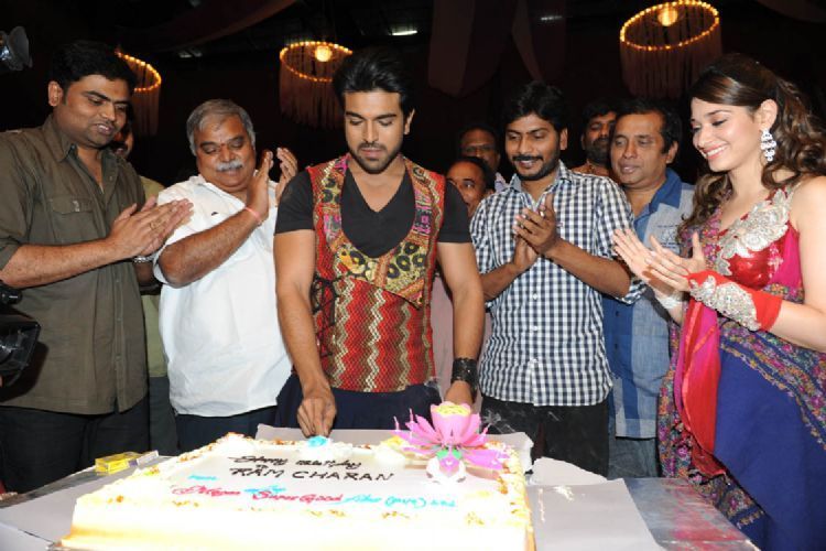 Ram Charan celebrates his birth day among Racha team on Monday.