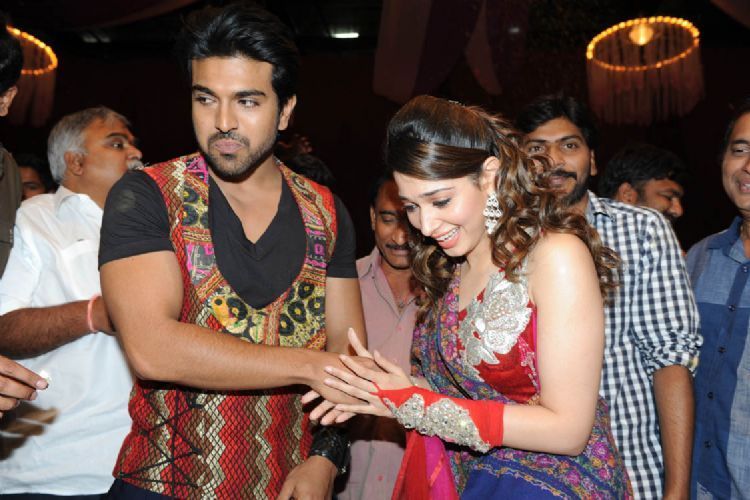 Ram Charan celebrates his birth day among Racha team on Monday.