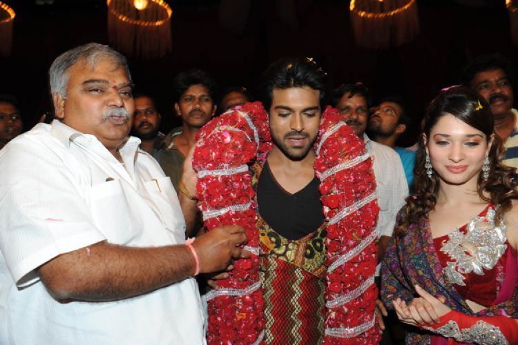 Ram Charan celebrates his birth day among Racha team on Monday.
