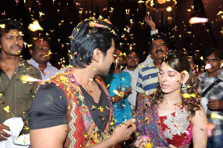 Ram Charan celebrates his birth day among Racha team on Monday.