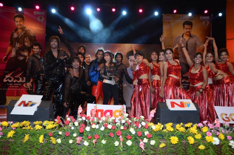 NTR's much awaited film Dammu audio tracks were released by noted music composer MM Keeravani at a grand function held at Silpakalavedika on Thursday. NTR attended the function along with his wife Lakshmi Pranathi for the first time.