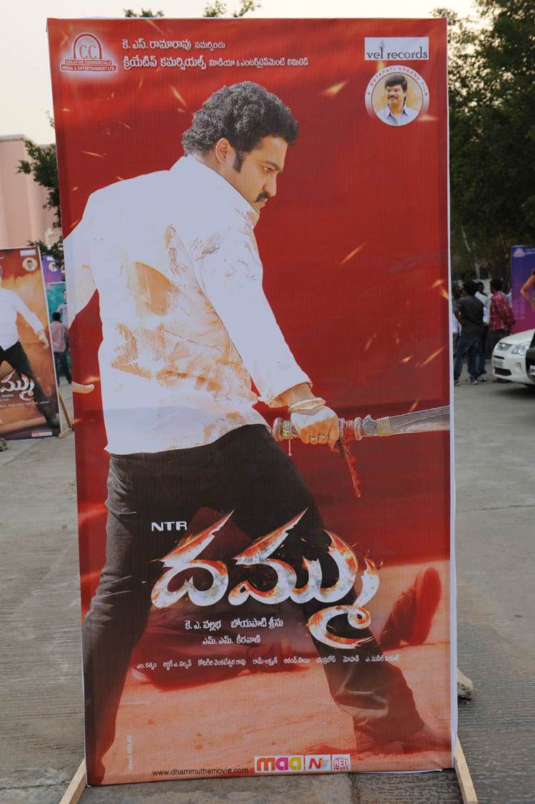 NTR's much awaited film Dammu audio tracks were released by noted music composer MM Keeravani at a grand function held at Silpakalavedika on Thursday. NTR attended the function along with his wife Lakshmi Pranathi for the first time.