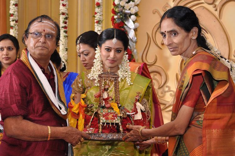 The engagement ceremony and the wedding reception of actors Sneha and Prasanna was held at Srivari Kalyana Mandapam. Sneha and Prasanna exchanged garlands and rings in a traditional ceremony. The blushing bride and the charming groom looked beautiful in their expensive and dazzling costumes. The function was attended by their family and friends.